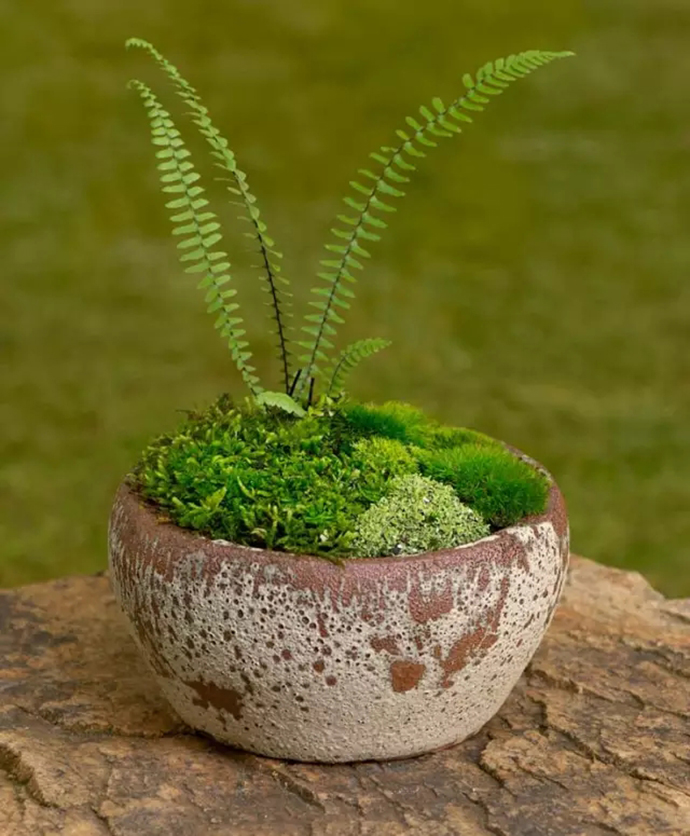 一只古朴典雅的石器花盆,一盏泛着旧时光的灯罩,蕨类植物的柔软与它们的坚硬,形成了完美的呼应。你可以把它置于书桌,也可以把它悬挂在空中,无论在哪里,它们的美总是让你无法忽略。