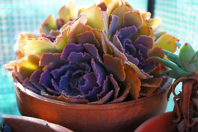 秋天紫外线充足,为多肉增色提供了便利。但值得注意的是,切记突然暴晒、突然“乘凉”,总要有个循序渐进的过程嘛,即刚入秋时,先把多肉放在散射光位置,适应紫外线环境后放在阳光下直射,有条件的可用遮阳网遮光。