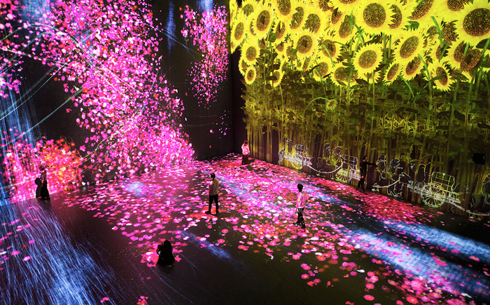 TeamLab是2001年以东京大学研究所的学生为中心所创立。最初只有4个人的数码技术与艺术的跨界公司。如今,Teamlab已成为拥有400多名程序员,工程师,数学家,建筑师,网页设计师的专业团队。Teamlab的很多作品都在强调改变世界的愿望,强调创造性、未来。通过打破艺术,科学,技术,创造界限,用全新艺术手法为观众带来突破现实的沉浸式体验。