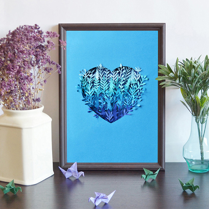 分层的纸艺作品将不同的小部件分层展示,光线成为作品的组成部分,不同层次的纸张形成的阴影让作品更加立体生动。