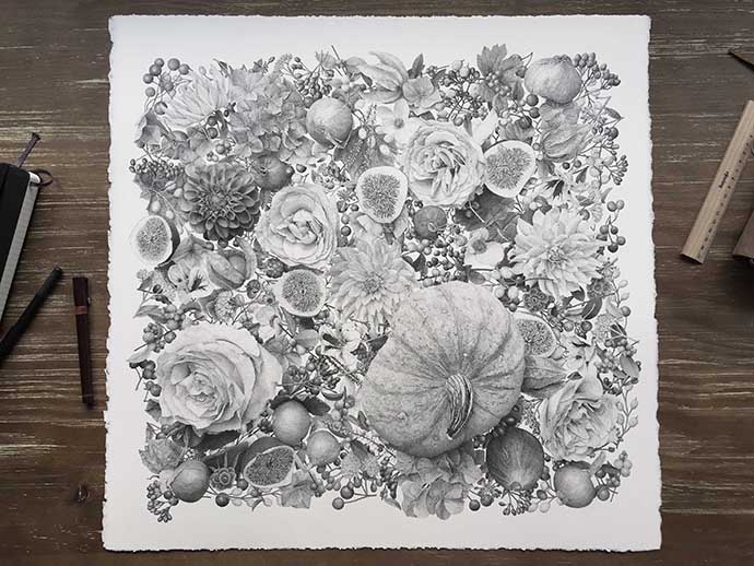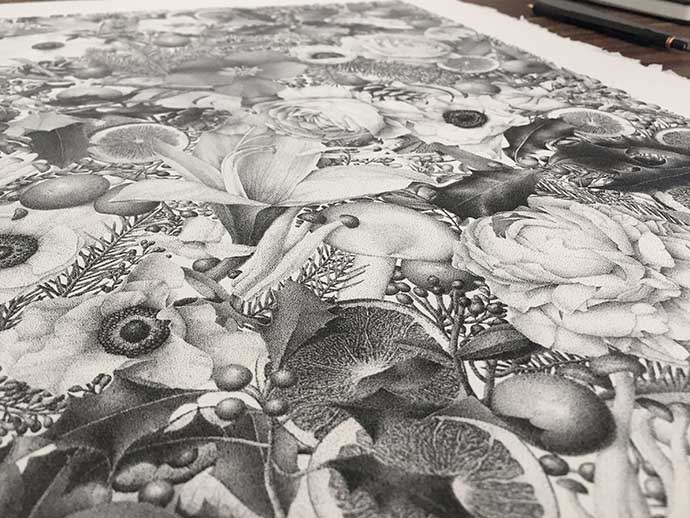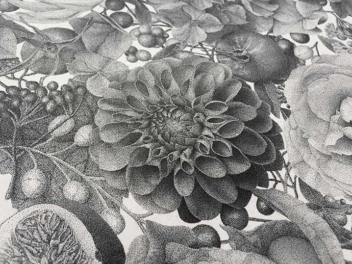 四季系列的第二幅作品“Winter”大约8百万个墨点,历时400小时完成