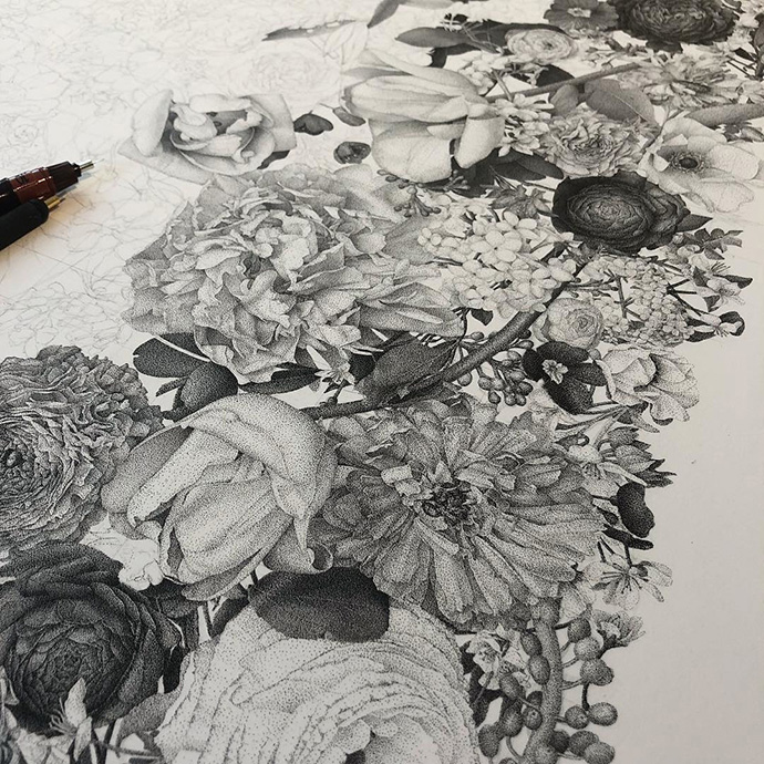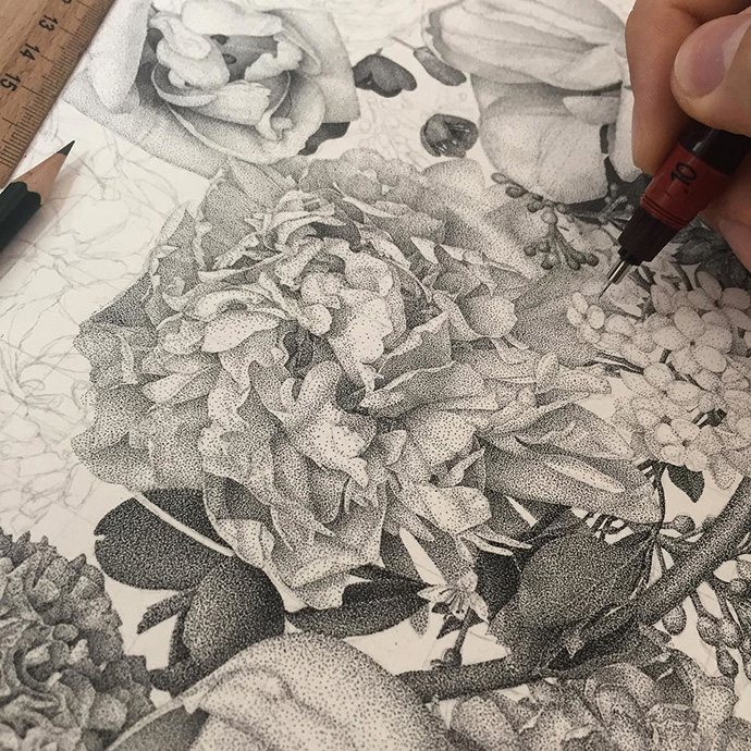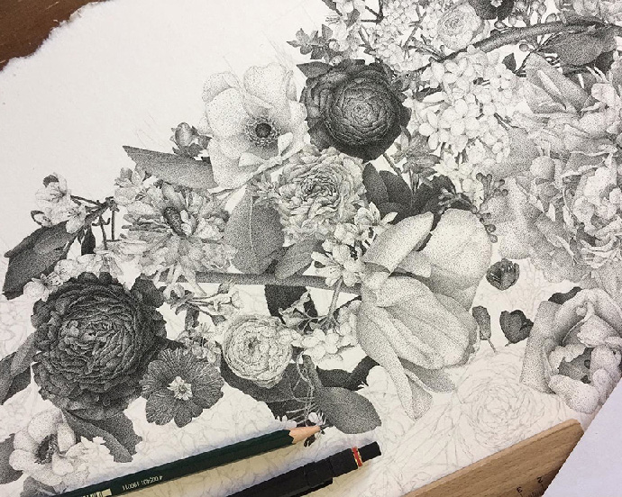 这件作品有大约1200万个墨点,历时2个月时间完成,共计600小时。