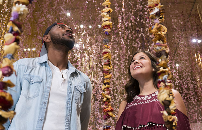 在1650名当地志愿者的帮助下,Rebecca将50万朵花做成的花串悬挂起来,这些干花除了重复利用了以前的装置作品保存下来的干花,还使用了15万朵当地采集的植物。