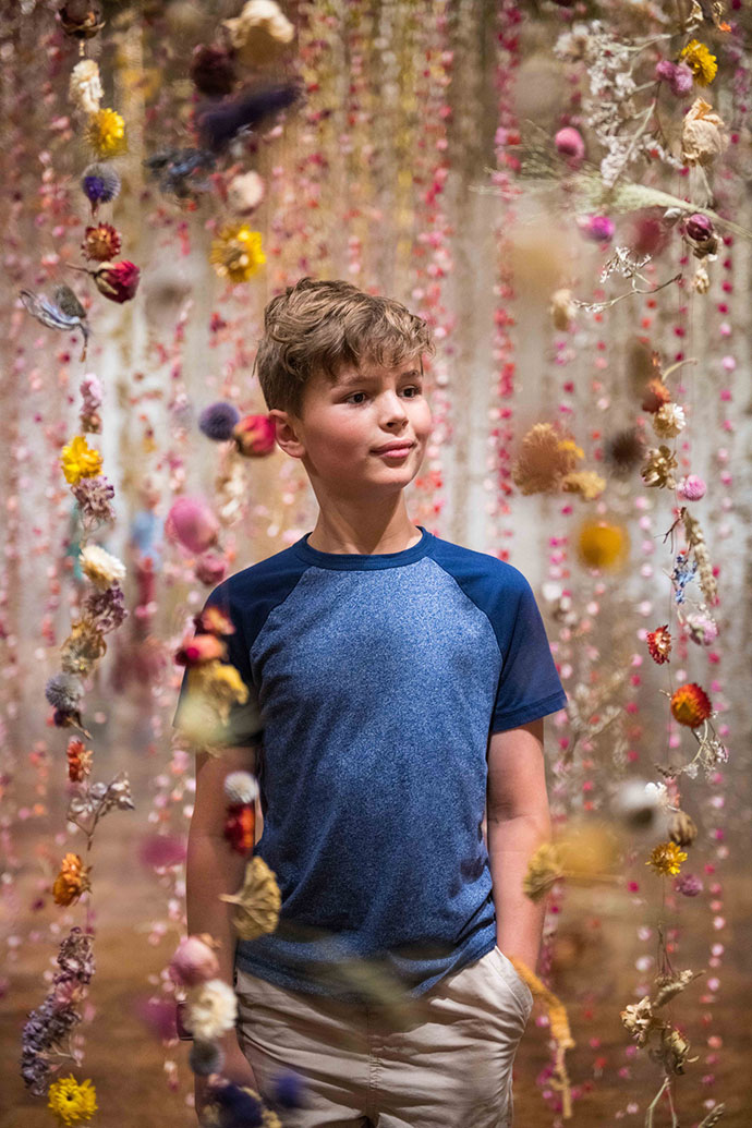 Rebecca的花艺装置作品一贯以悬挂起来的花朵为主,“悬浮”在整个空间中的花朵为观众带来沉浸式的体验。