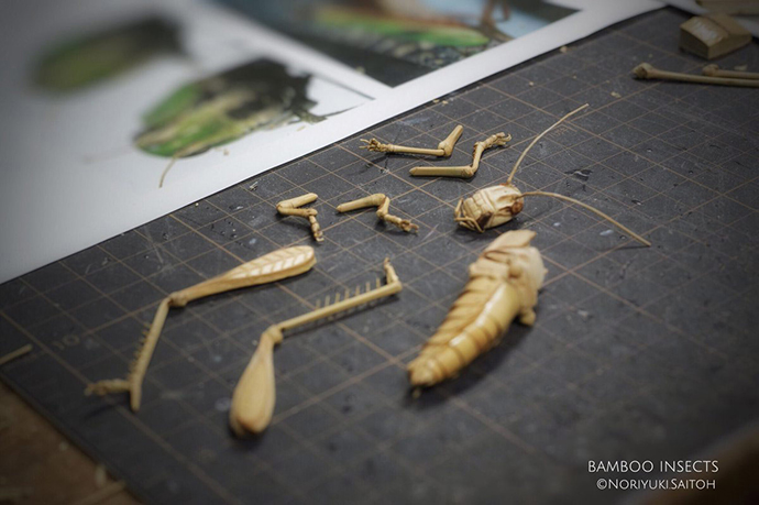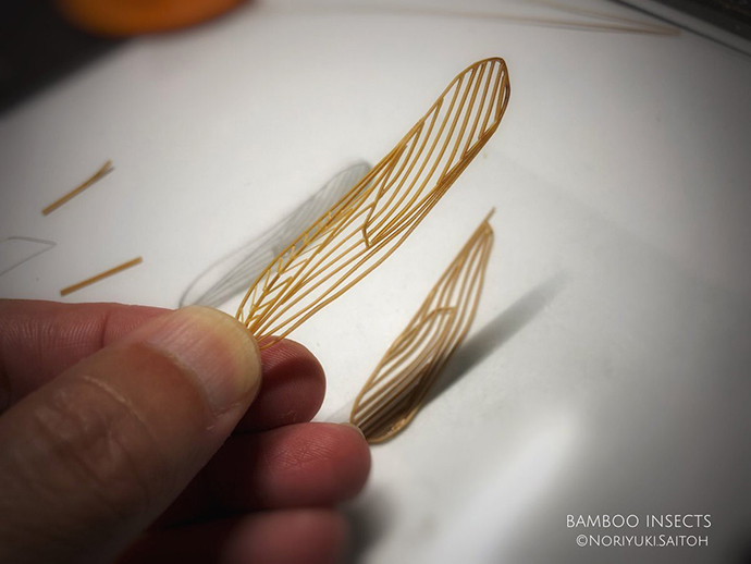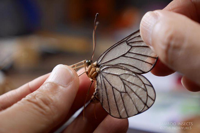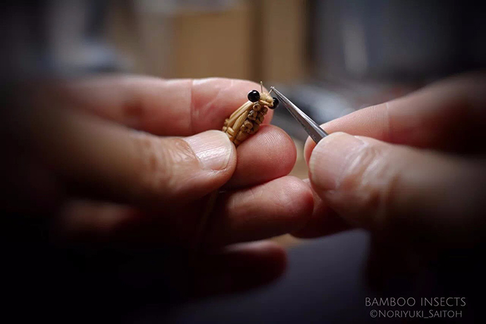 Noriyuki Saitoh是来自日本的艺术家,这些如同标本一样精细的昆虫都是使用竹子制作而成。如果不是昆虫身上的竹子纹理,相信你一定会以为这就是昆虫本人!