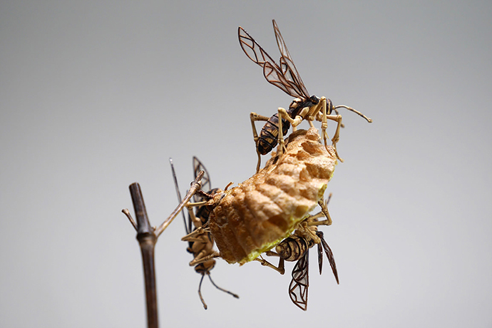 Noriyuki Saitoh还会在作品中加入一些故事情节,体现昆虫的生活习性,这让作品更加生动,更具有想象空间。