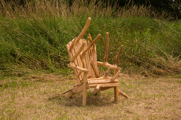 Hugh Hayden在保留传统家具结构的基础上,特意保留了木头原有的树枝和分叉,这使得这些家具完全不能供人类使用,事实上这些作品旨在探索雕塑艺术如何融入自然景观。