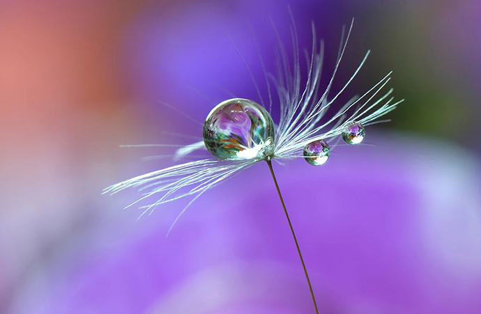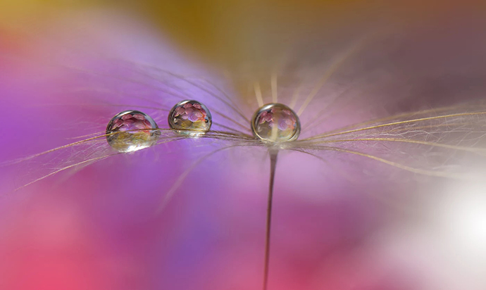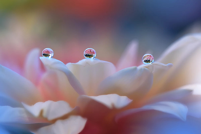 Juliana说,这些水滴都是在拍摄过程中真实地附着在花瓣上的,而非后期合成。很多照片甚至连拍摄的背景都不会改变,只对图片做一些简单的调色处理,让画面更加柔和。