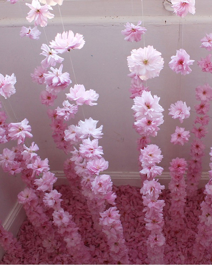 与一般的堆砌或炫技型的花艺装置截然不同,Jenine将这些鲜花以简单细致的方式排列起来,画面洁净灵动,让人忍不住想要置身其中,却又生怕惊扰了这个温柔的梦。