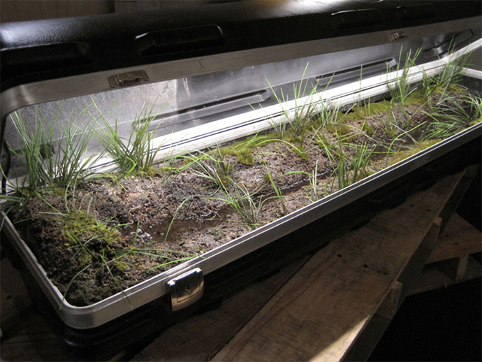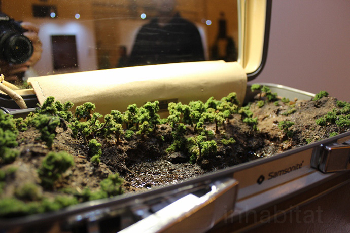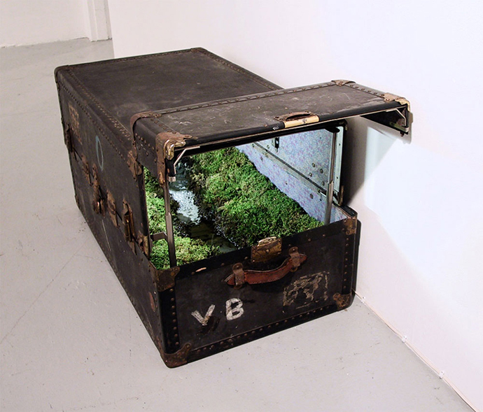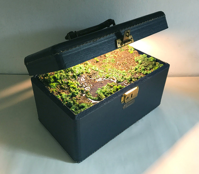 Kathleen VanceKathleen Vance把自己的行李箱叫做Traveling Landscapes,在这些旧旧的行李箱里,她建造了一系列微型自然景观。