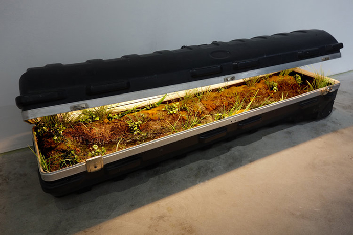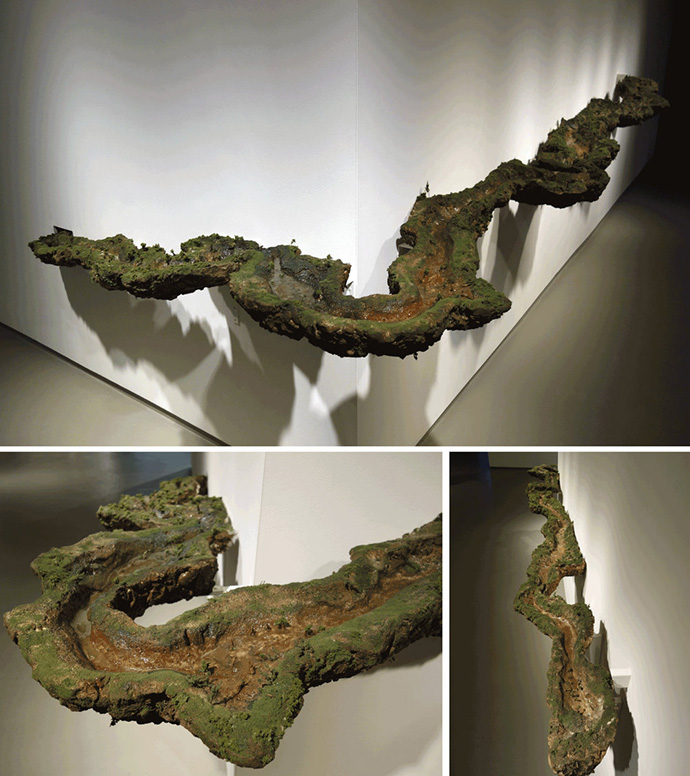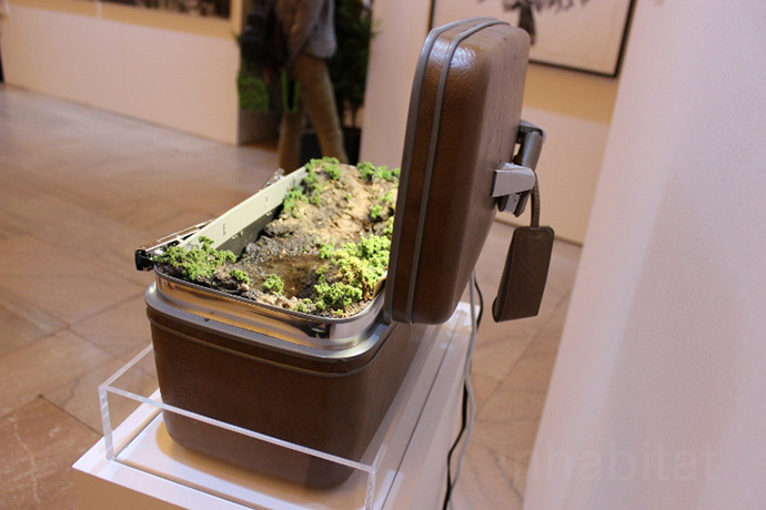 这些作品中的一部分是树脂等人工材料制作而成的,另一部分是把真正的光照、水流、土壤和鲜活的植物结合在一起,形成了完全封闭独立的微景观。
