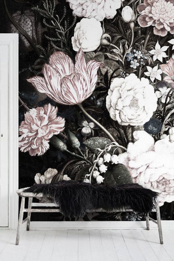 由荷兰Ellie Cashman 设计的黑暗中的花卉壁纸,有着超写实的效果为室内空间营造出浪漫且神秘的氛围。