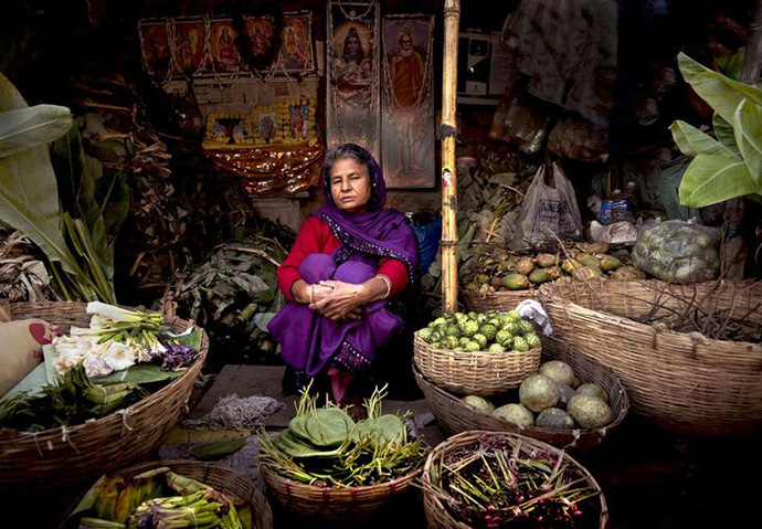 Ken Hermann曾经游览加尔各答时,被花市上千人卖花的场景所吸引,尤其令他着迷的是这里的男人穿着的衣服。这幅场景一直在他的脑海里挥散不去,他决定重新游览该花市给这些卖花的男人们拍照。