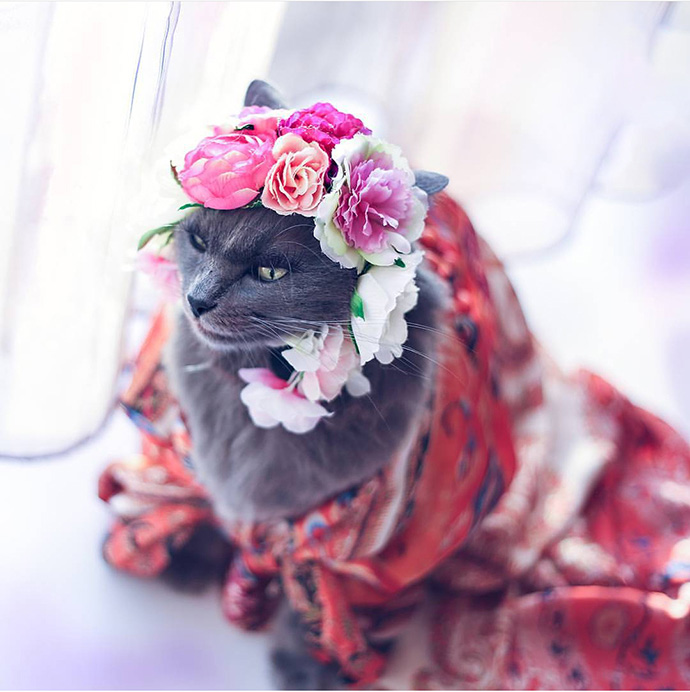 头戴鲜花,身披华服,专属定制的眼睫毛。高冷地盯着远方,神圣不可侵犯。