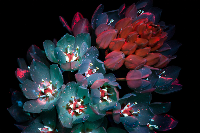 来自南加州的28岁摄影师 Craig Burrows 专注于“替代光摄影”。小意达今天介绍的这组图片就是他使用“ultraviolet-induced visible fluorescence (简称UVIVF)”的摄影技法拍摄的植物——通过紫外灯诱导植物发出可以见荧光。