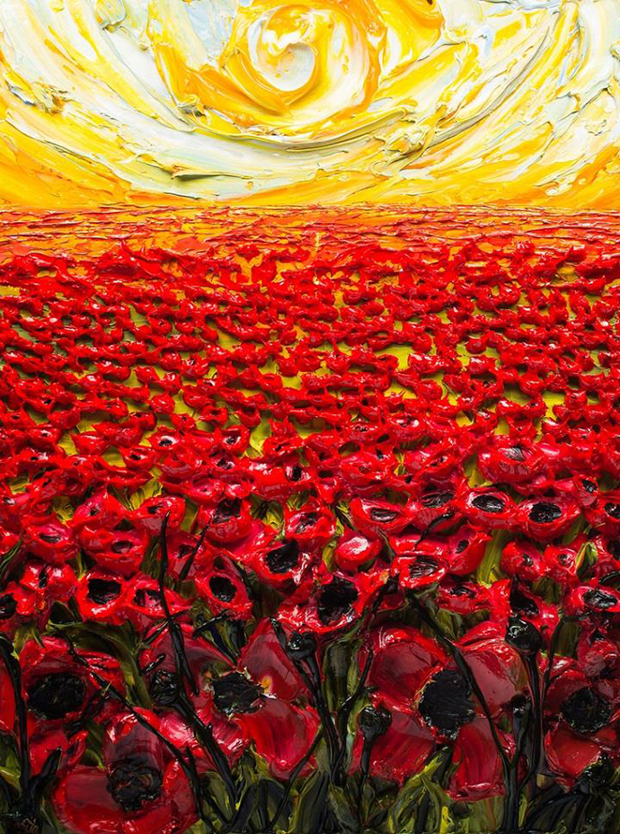 Justin将从自然界、人性以及生活经验得到的启发表达在画作中,他的创作题材中有相当一部分是花卉,比如这些绚烂的虞美人花海就源自意大利旅行。这些花卉系列的画作反映了Justin对自然和色彩的热爱。