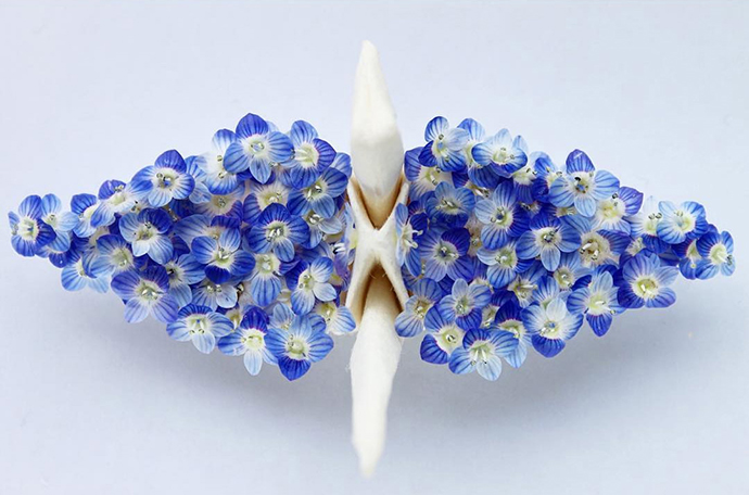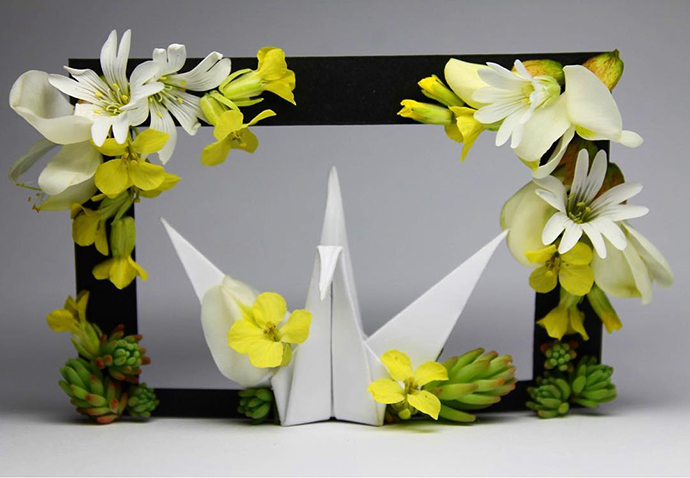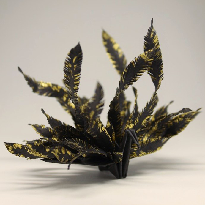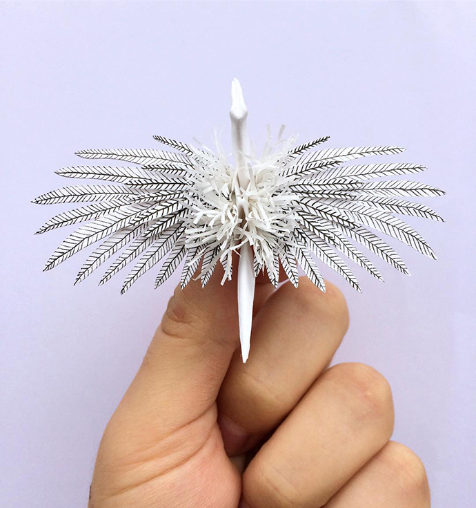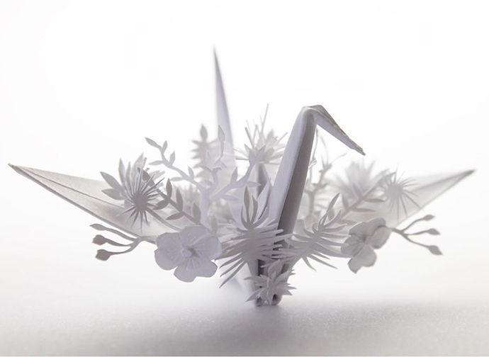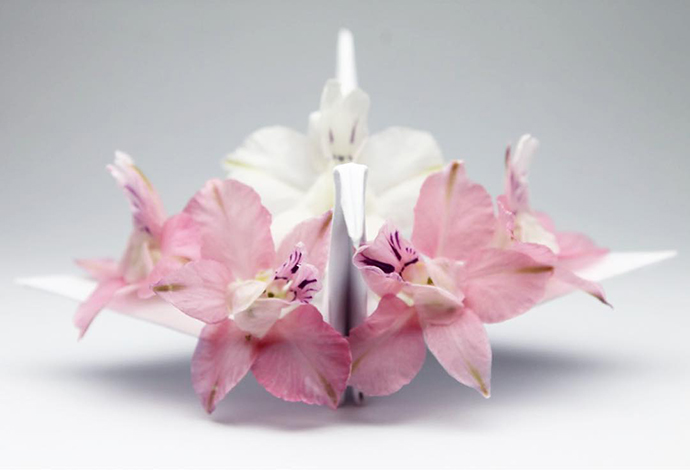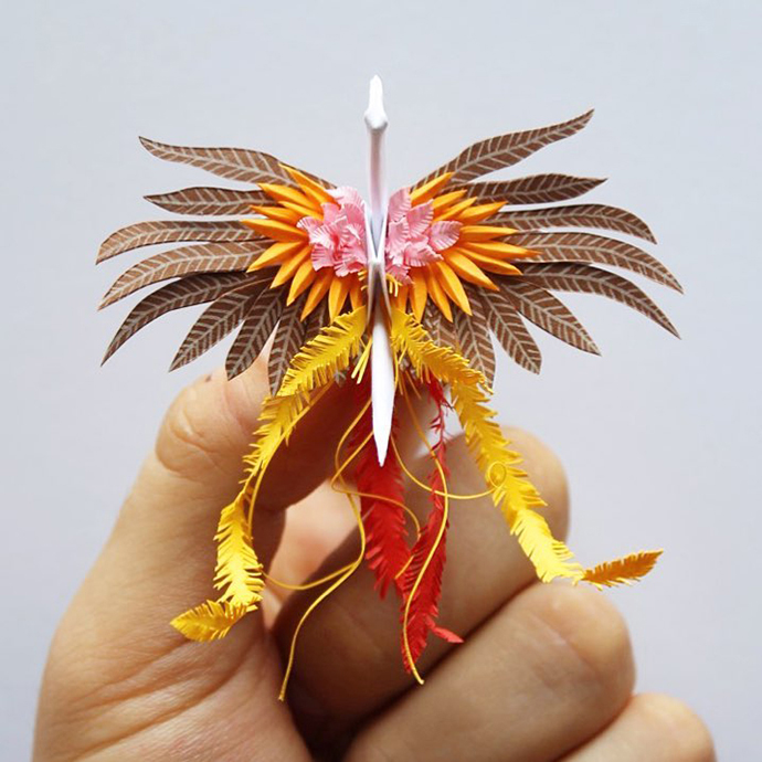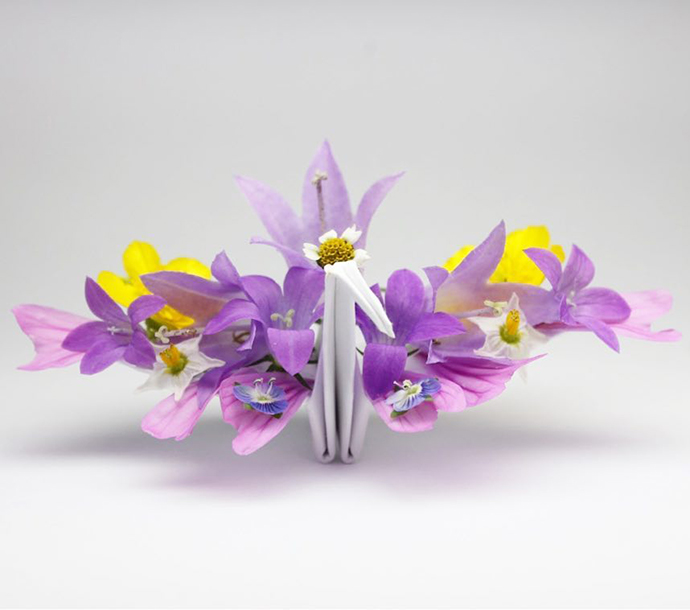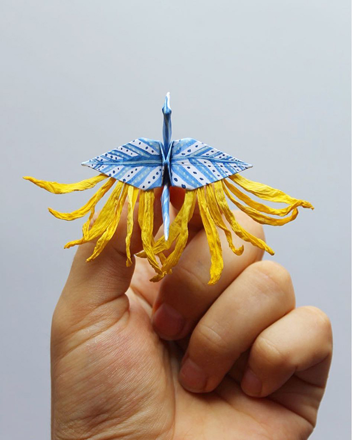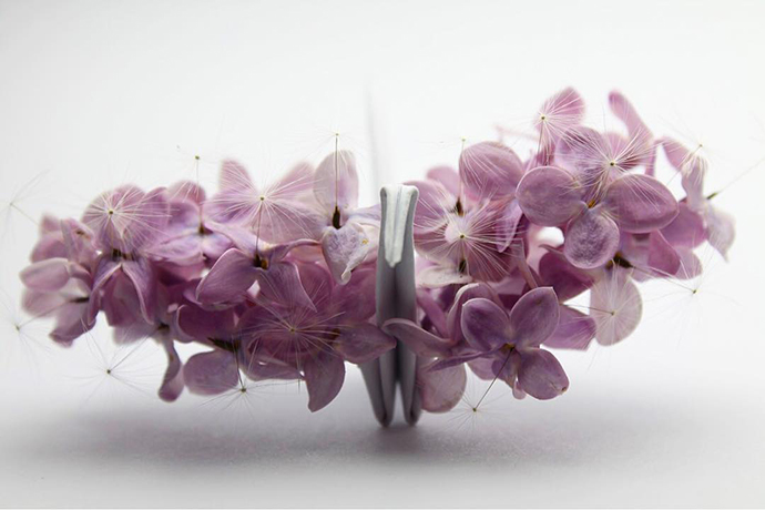 Cristian Marianciuc的千纸鹤并不是基本款千纸鹤的每日重复,而是每一只千纸鹤都加入不同的装饰和创意。其中不乏很多花朵、植物元素的装饰。