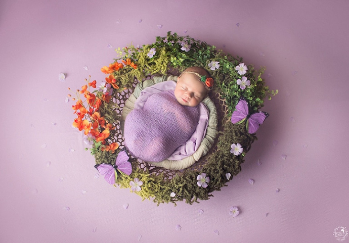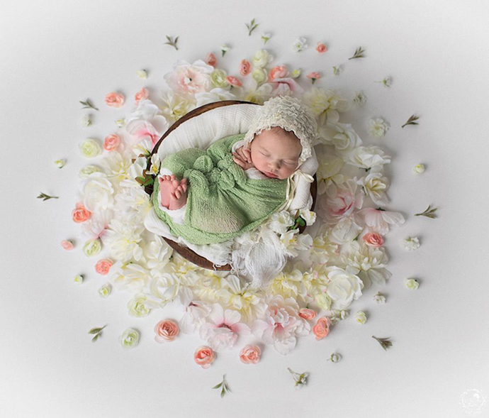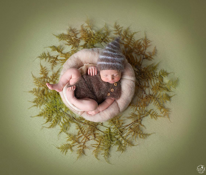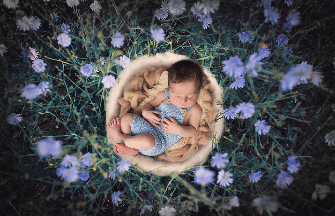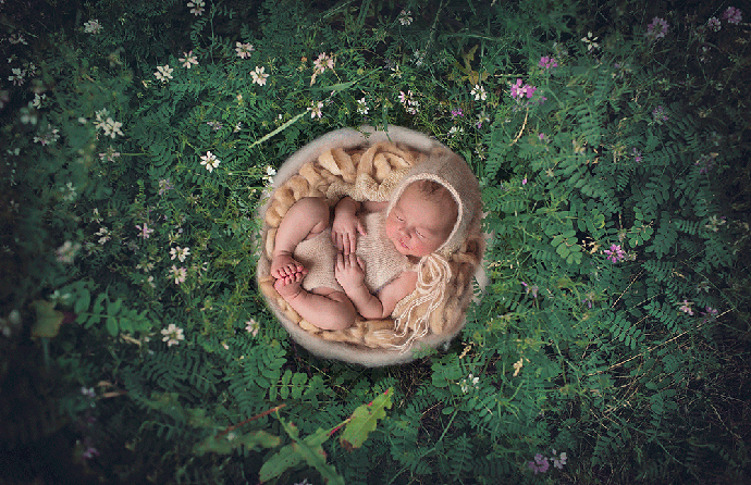喜欢植物的Gabriele经常在拍摄时利用自然元素。在拍摄前,Gabriele通常都会花上好几个小时手工制作拍摄背景,满意之后将熟睡的婴儿放在布景的中心,婴儿从自然中诞生,在自然中安眠。