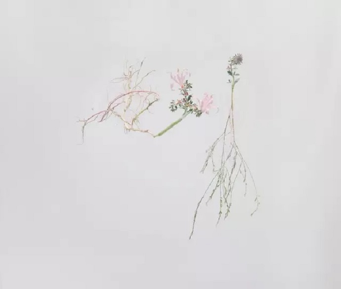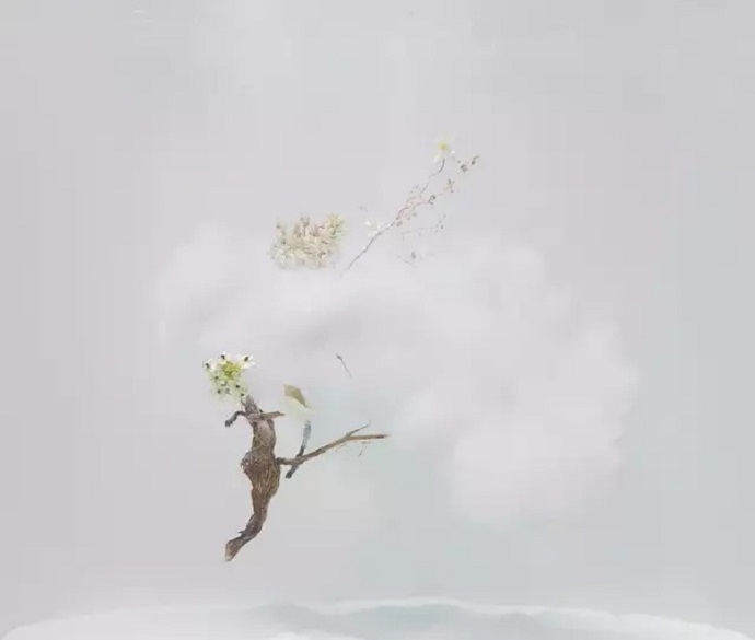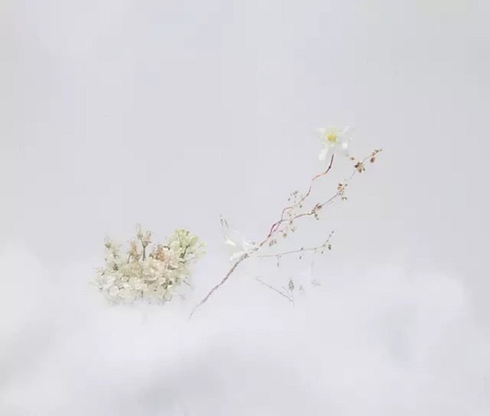 欲燃的红、纷飞的白,委身在含苞的、绽放的花瓣上,在静止的水面下展开舒缓而沉静的舞蹈动作。