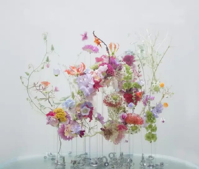 Anne ten Donkelaar的作品像是一幅花艺水彩,用真实的花朵在水中作画,一件作品中通常会采用多种插花技艺,有时还会通过不同的嫁接技术,以呈现更好的艺术效果。