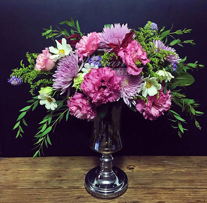 这世界上并不存在谁必须要和谁搭配在一起,如果你这么想了,说明你已经开始有偏见。思维必须从世俗观念和常规套路的局限里跳脱出来,充分发挥花材本身的特质,尝试一些看似不太可能的花材、花器、饰物的组合,才能创造出更多有趣的作品。