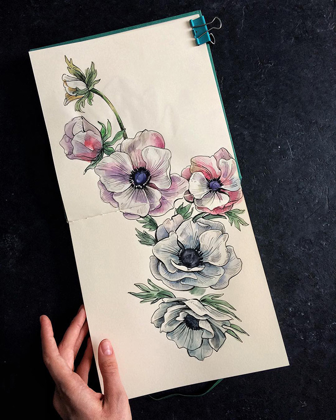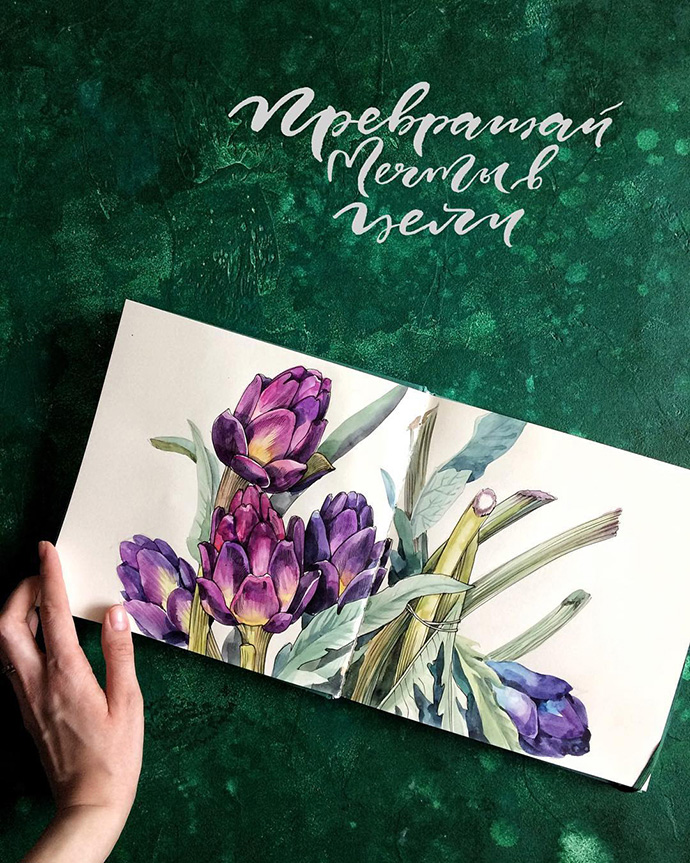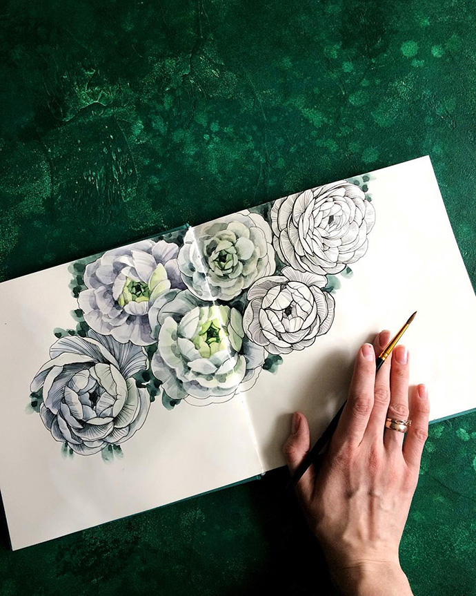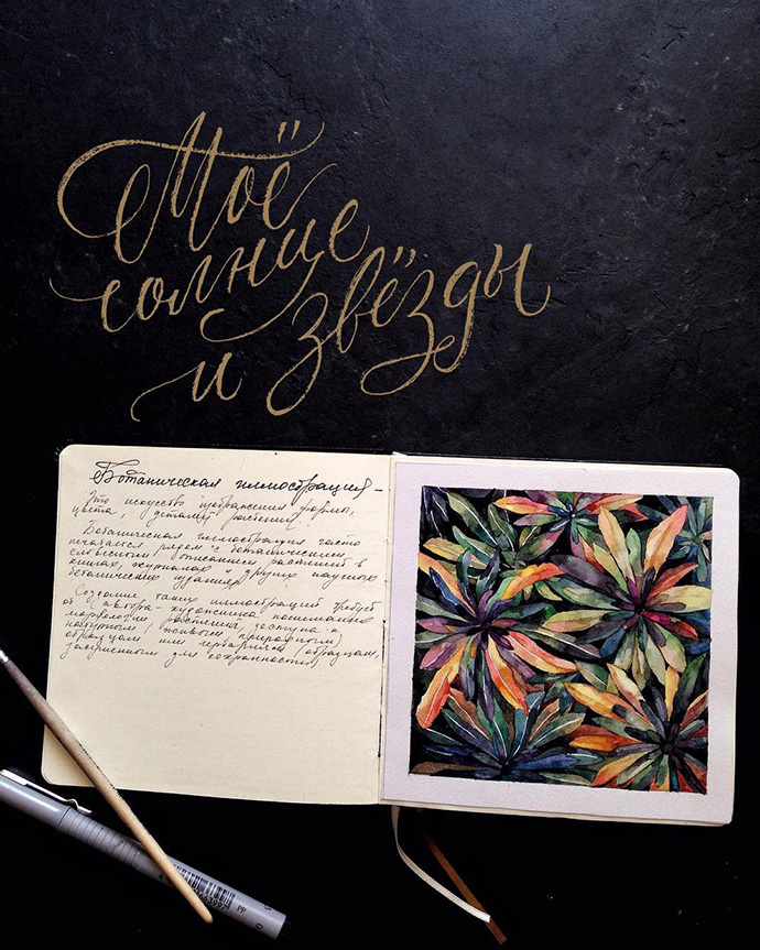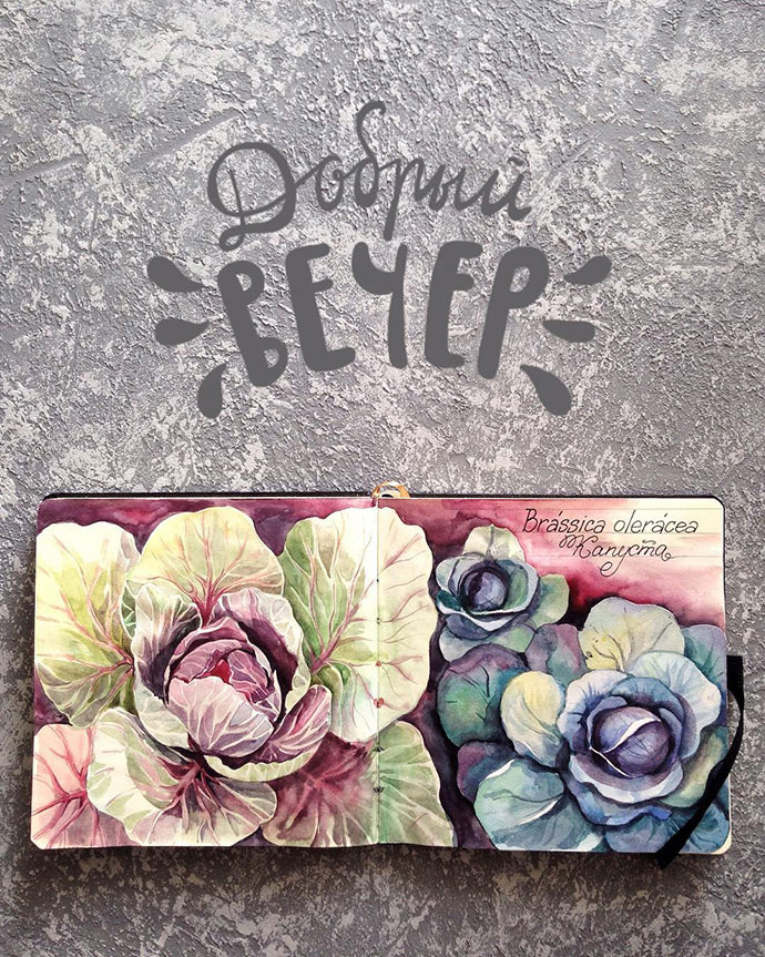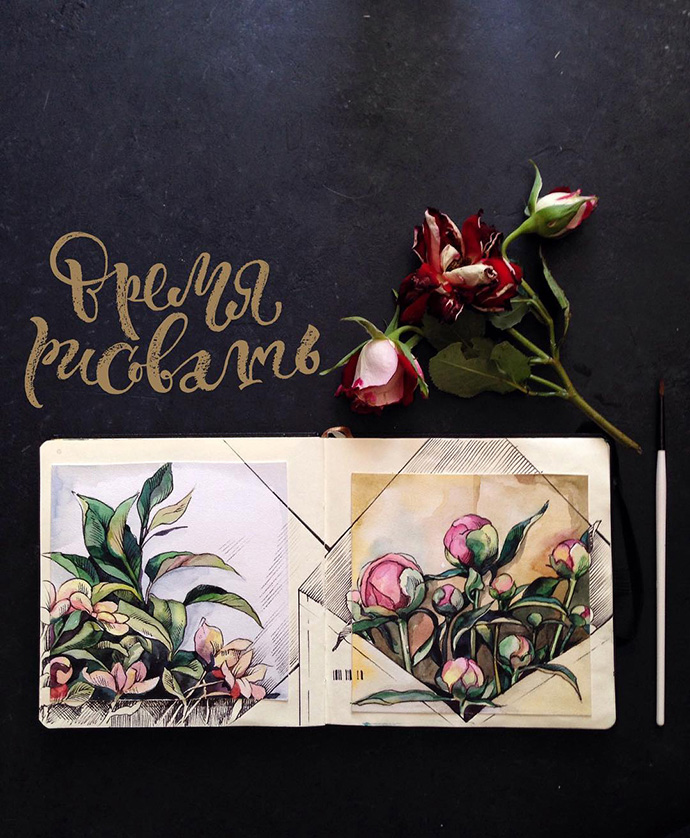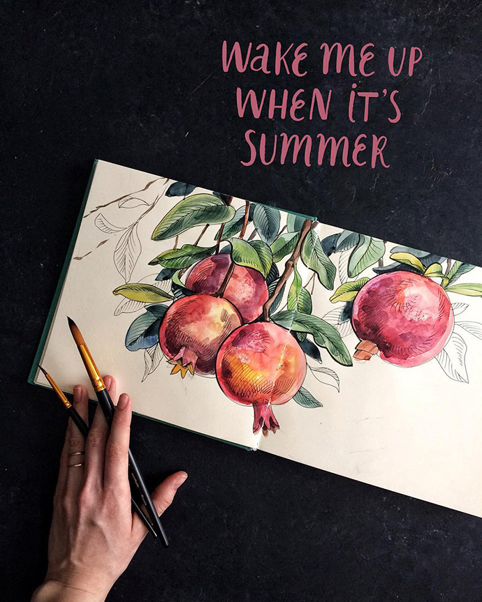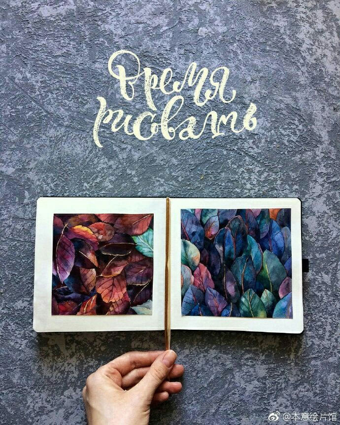 Yulyua Kuzichkina来自俄罗斯,她常常在手账本上画水彩,虽然篇幅不大,但在构图方面有非常独特的风格。
