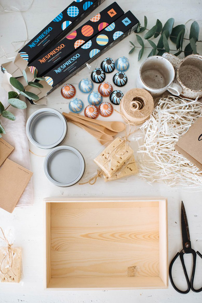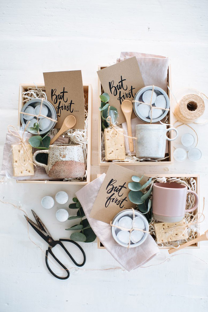 只需买一些甜点、陶瓷杯、咖啡、亚麻餐布,就能轻松打造一款高品质感觉得咖啡礼盒。