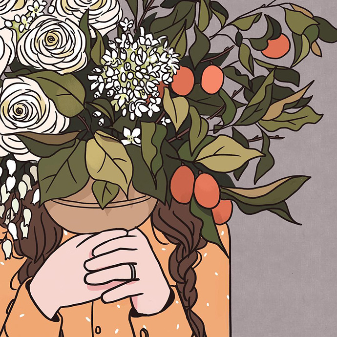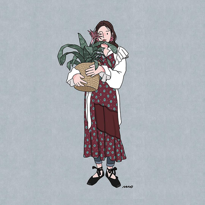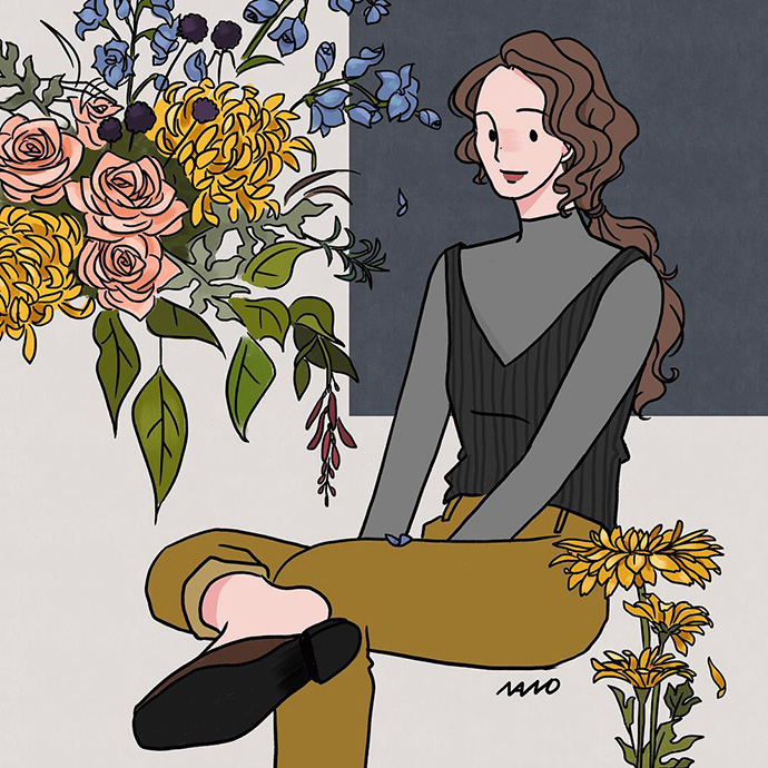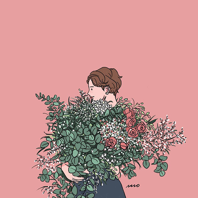 怎样跟鲜花同框,参考NANO的这些插画就可以啦~
