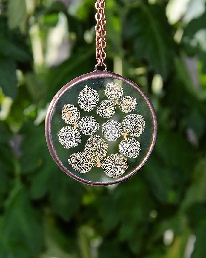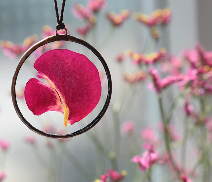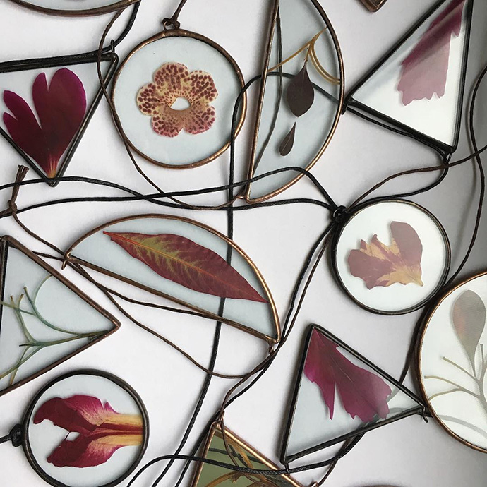 除了押花领结,Tereza Varga还有各种押花制作的项链和家居装饰。