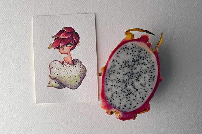 水彩并不是Tiurina最擅长的绘画方式,但最近几个月,她以蔬菜和水果为灵感,创作了一系列古灵精怪的水彩小人儿。