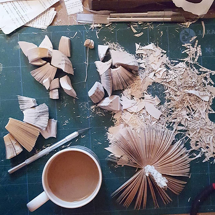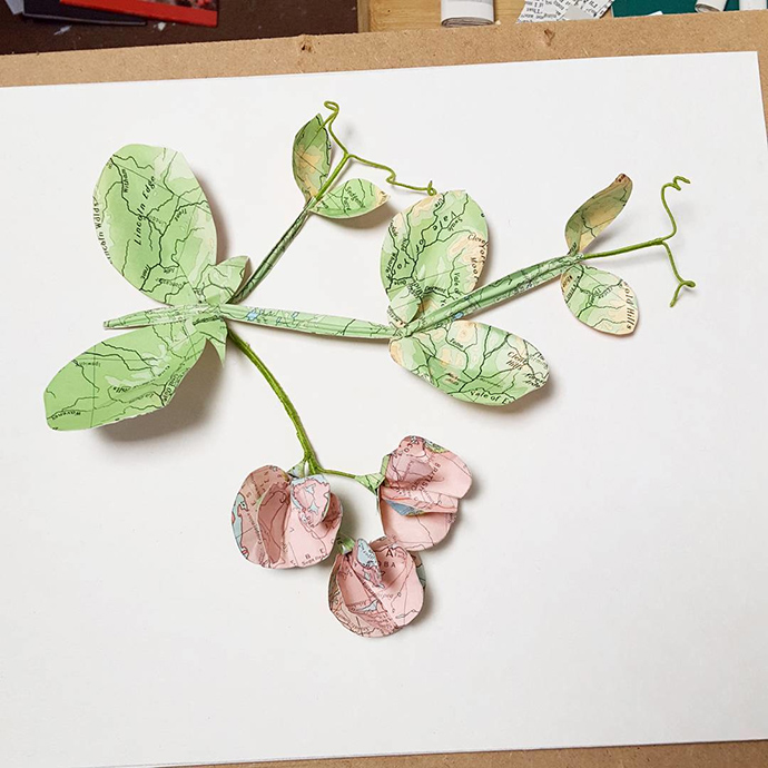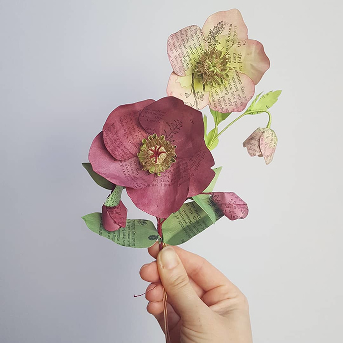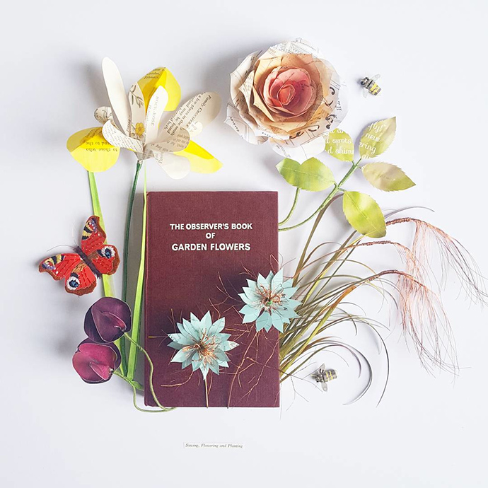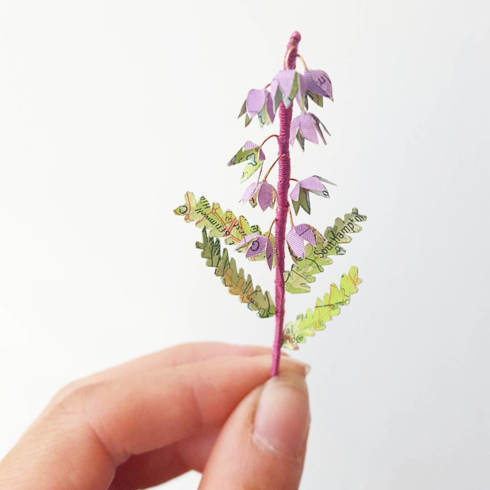 来自威尔士的Kate Kato是一名纸艺艺术家、雕刻师和自然博物收藏家,她的工作主要是利用传统的剪纸、雕刻、刺绣等技法制作纸艺植物和昆虫,但她使用的材料大多是回收的废旧纸张。