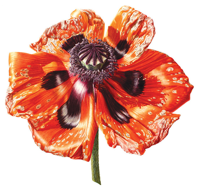 A Brilliant Life》的系列水彩画中,Denise Ramsay以写实风格的水彩画表现了虞美人从含苞待放到枯萎凋零的每个过程。