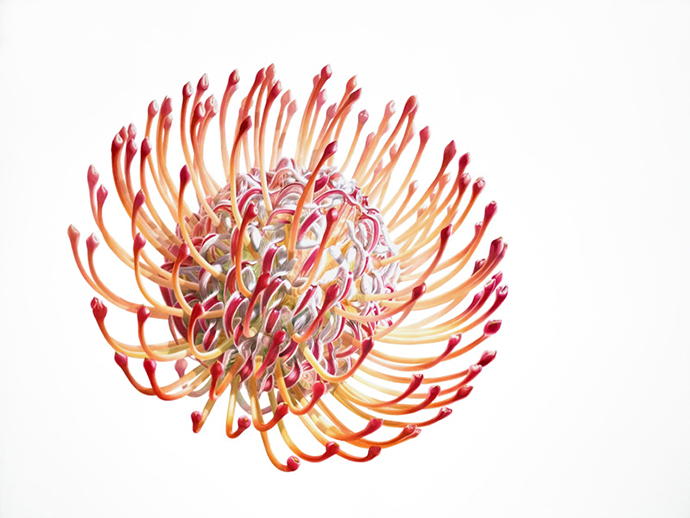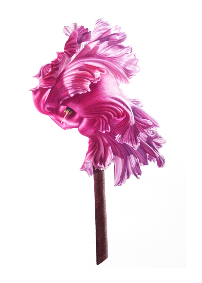 这组《A Brilliant Life》系列,Denise分6幅作品画出了一朵虞美人的开放过程,绘制过程历时18个月,写实的水彩技法让作品如同微距摄影作品般逼真。