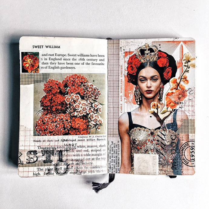 Sasha Martinez“一个人的垃圾是另一人的财富”,旧书、旧杂志、邮票,甚至旧的车票,在Sasha的拼贴本里焕发出新的生命力。
