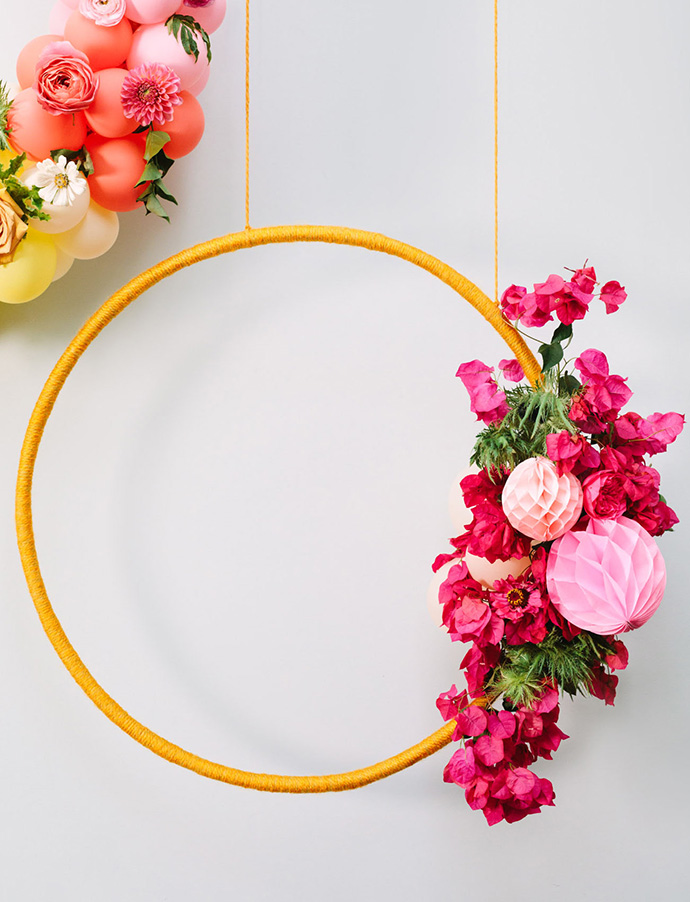 如果想装饰家里或其他的场合的墙体,不妨直接使用鲜花和气球,小巧的花环是不错的选择。