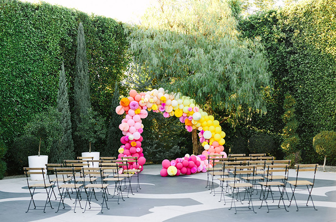 最方便的是,可以根据不同的主题选用相应风格的气球,森系婚礼使用白、灰色系气球,甜蜜活泼的婚礼选用糖果色系气球。