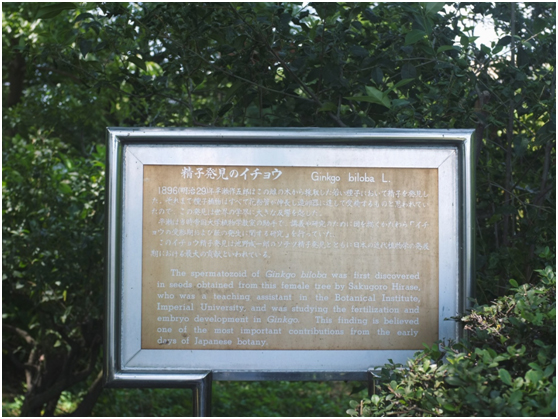 日本明治时期平濑作五郎先生为园内的一棵银杏树采集花粉的时候,发现种子植物精子泳动的受精,并发表论文轰动一时。作为小石川植物园的镇园之宝,处于园区中心。