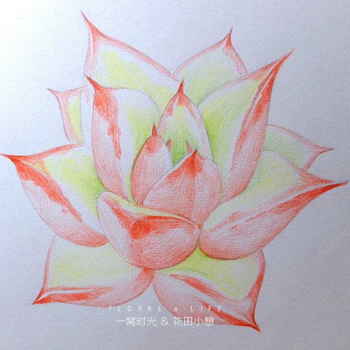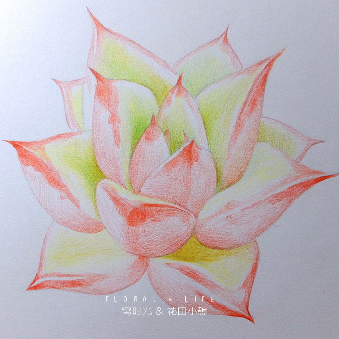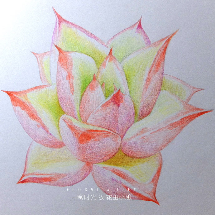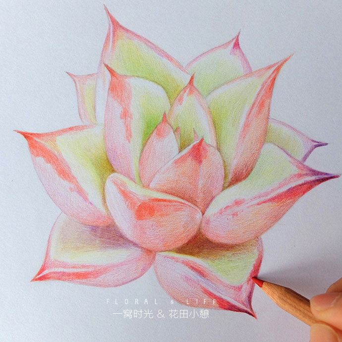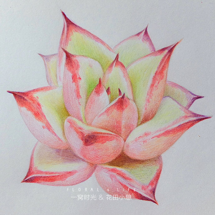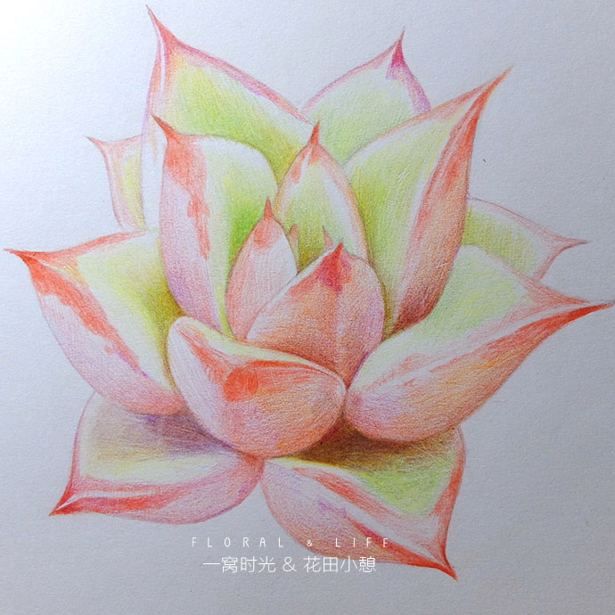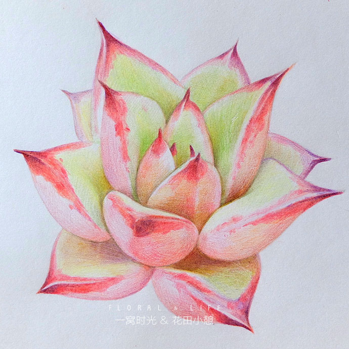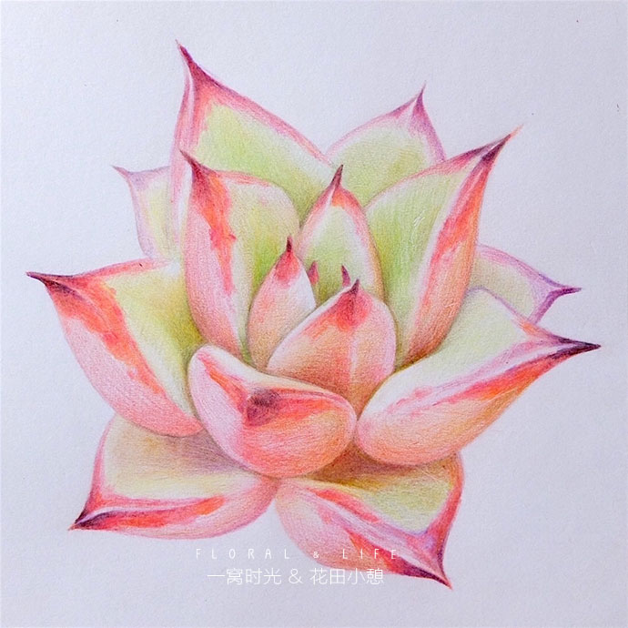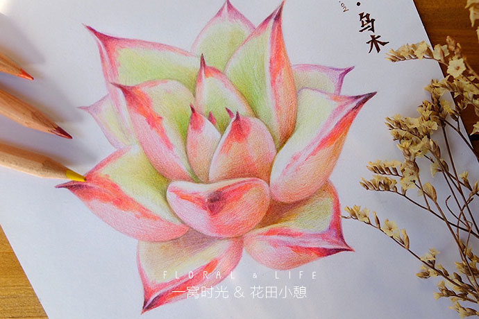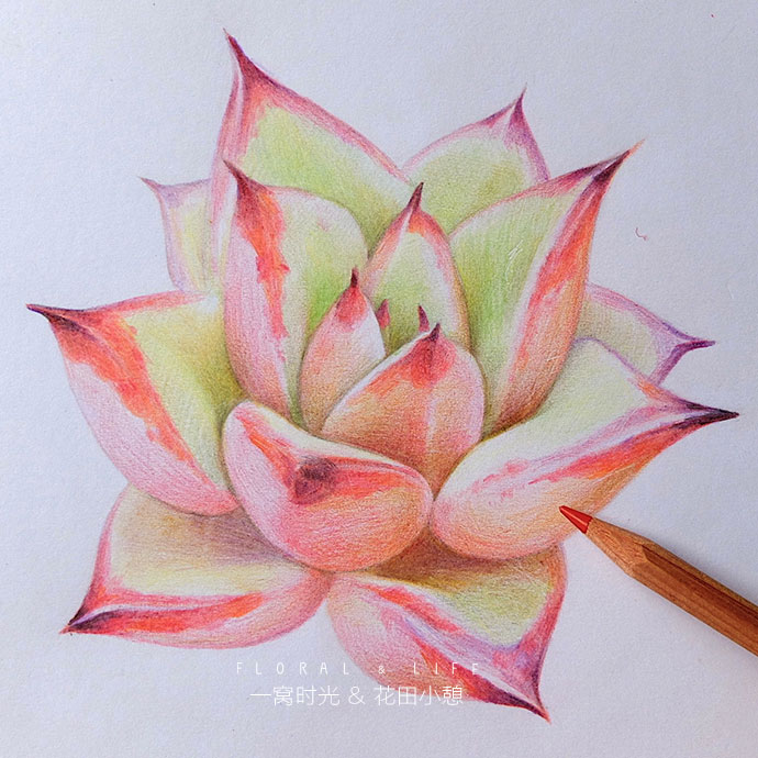 完成作品:最后检查一下整颗多肉的颜色和明暗关系,橡皮擦掉画面不干净的线条,乌木杂就完成啦.