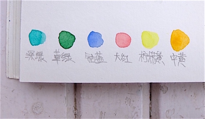 铺大调:蓝色加草绿加一点中黄调入大量水,先铺一个饱和度低一点,颜色淡一点的底色。