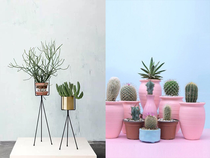 完成铺色:三颗仙人掌完成整体铺色,一颗偏蓝色,一颗偏深绿色,一颗偏浅黄色。