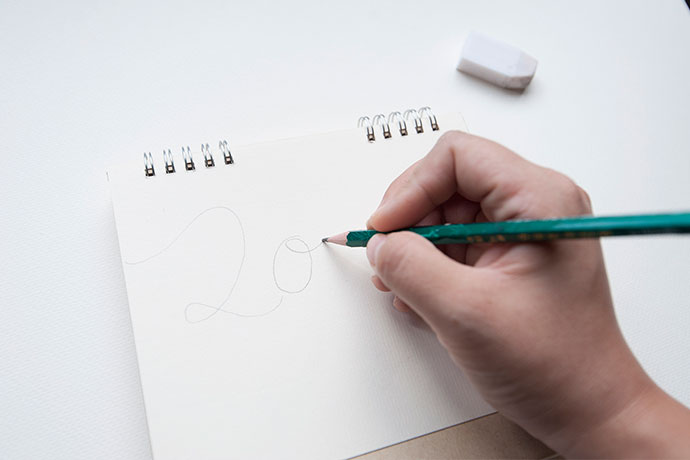 台历的封面,可以写出醒目的‘2017’年份。运用铅笔描出字体,再用自己喜欢的水笔颜色重新描绘。在这里,我使用了黑色与金色的水笔。