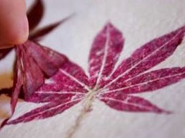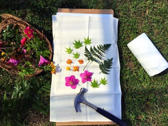 用锤子敲击植物,用力均匀,揭开纸巾或塑料膜,静置氧化后水洗棉布,晾干即可。