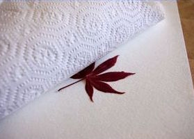 将植物放置在棉布上摆好位置(叶片向上),盖上一层塑料膜或纸巾。