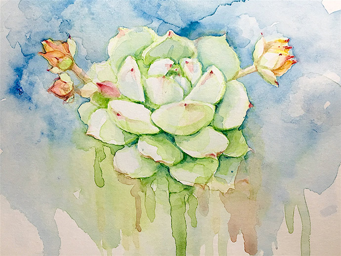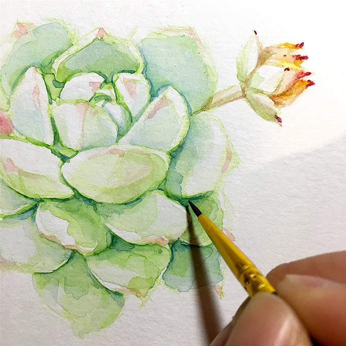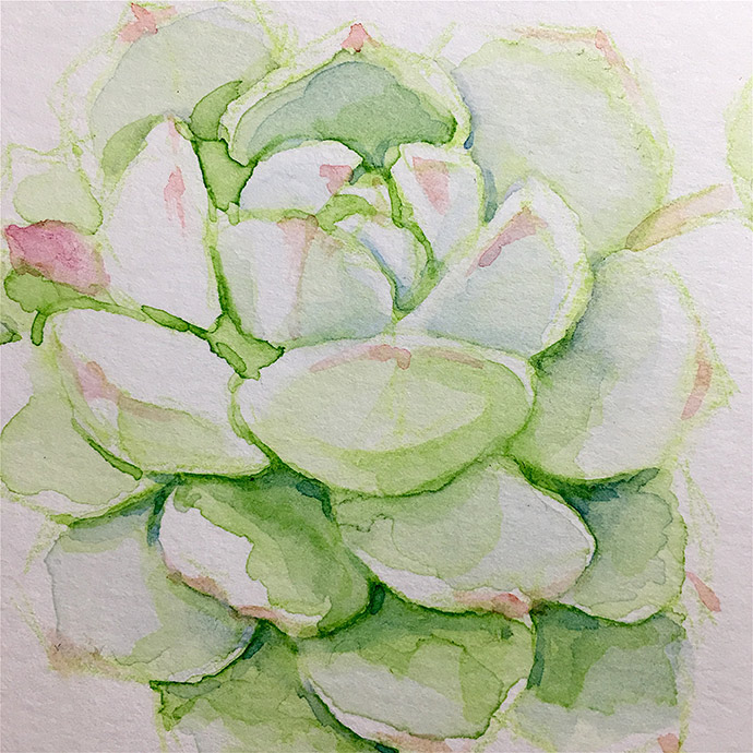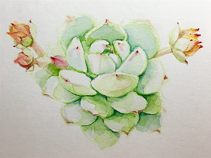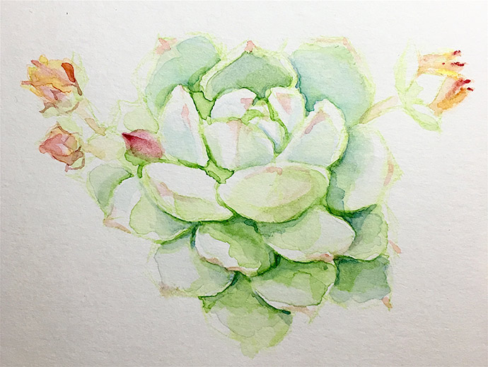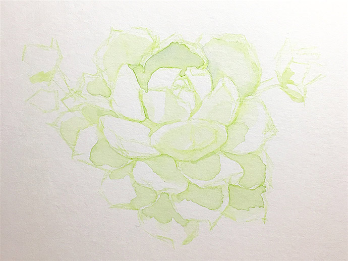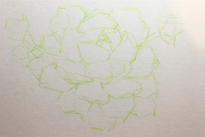 线稿:多肉的叶片层次很丰富,在画线稿的时候,先将叶片层数理清,再刻画形状. 这次用的是水溶性彩铅起稿.