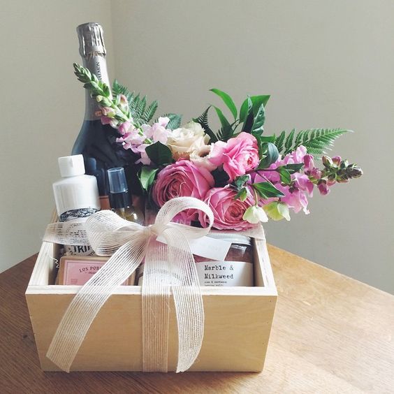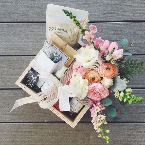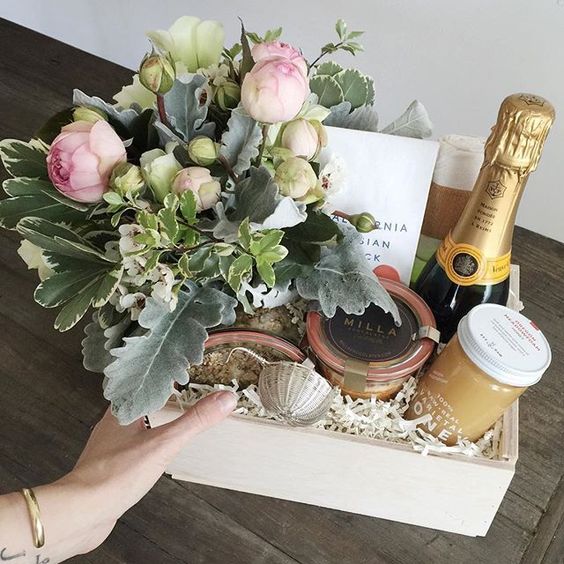 当很多朋友一起送礼时,不妨将这些礼物全部装在盒子或篮子里。再准备一束甜美的花束,在即将到来的秋天,有一种丰收的幸福感。