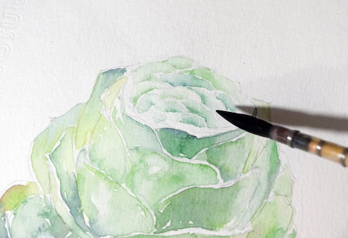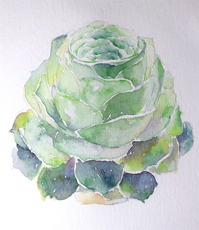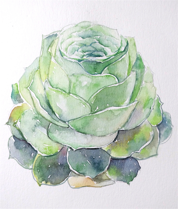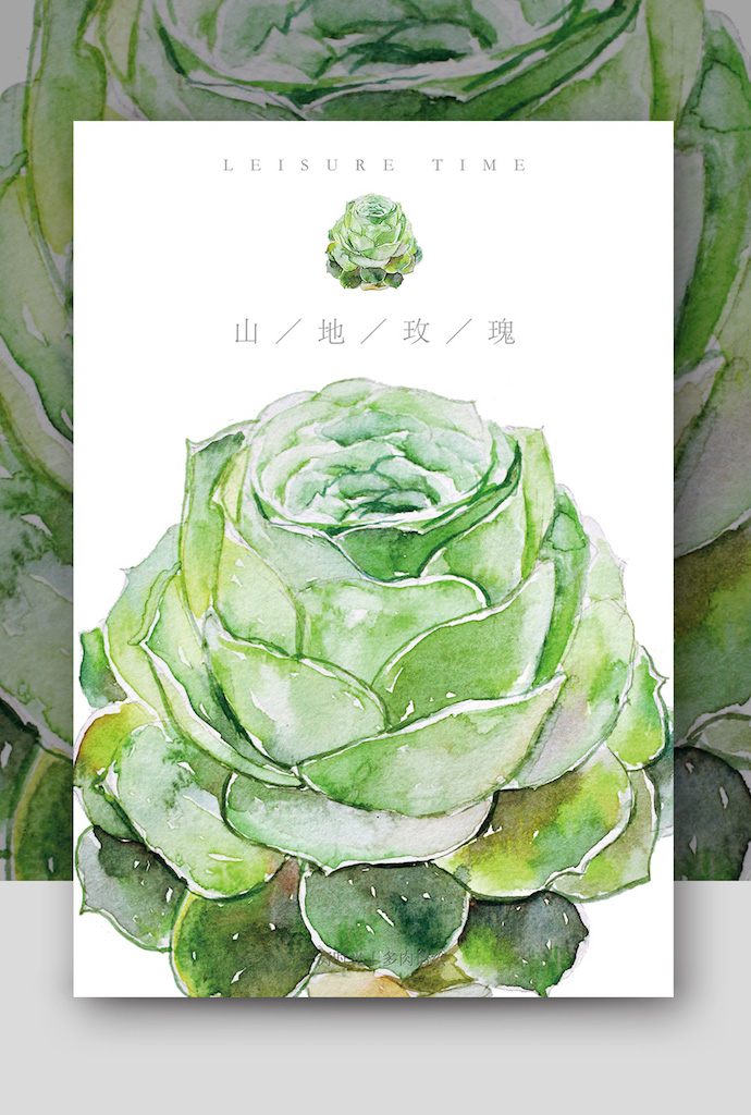 水彩手绘多肉教程|山地玫瑰