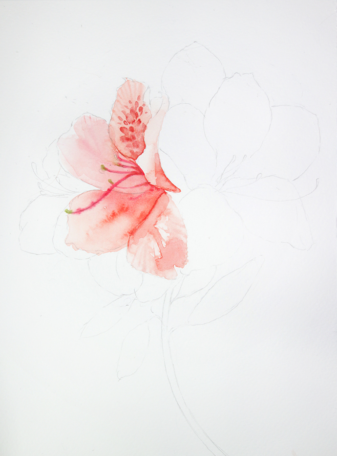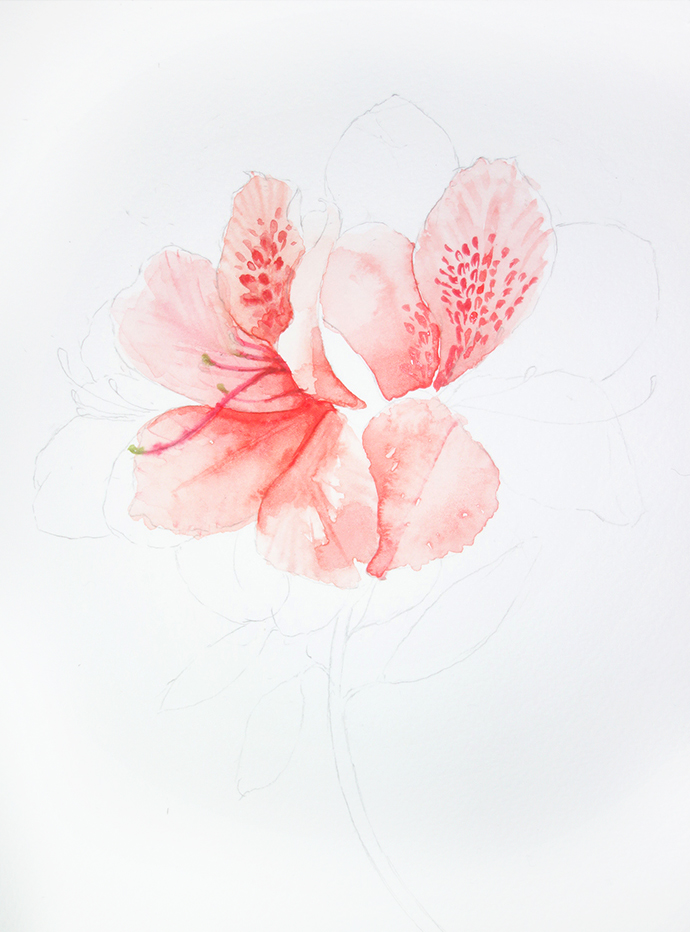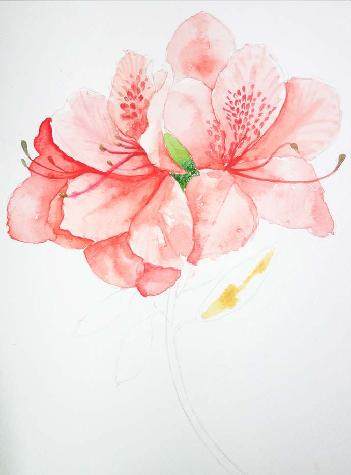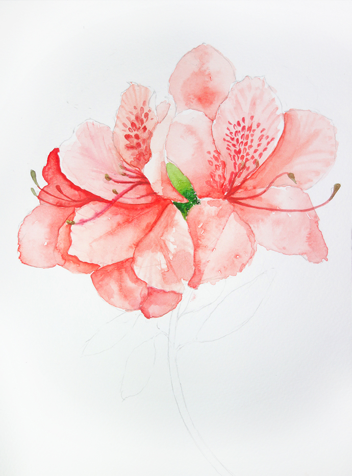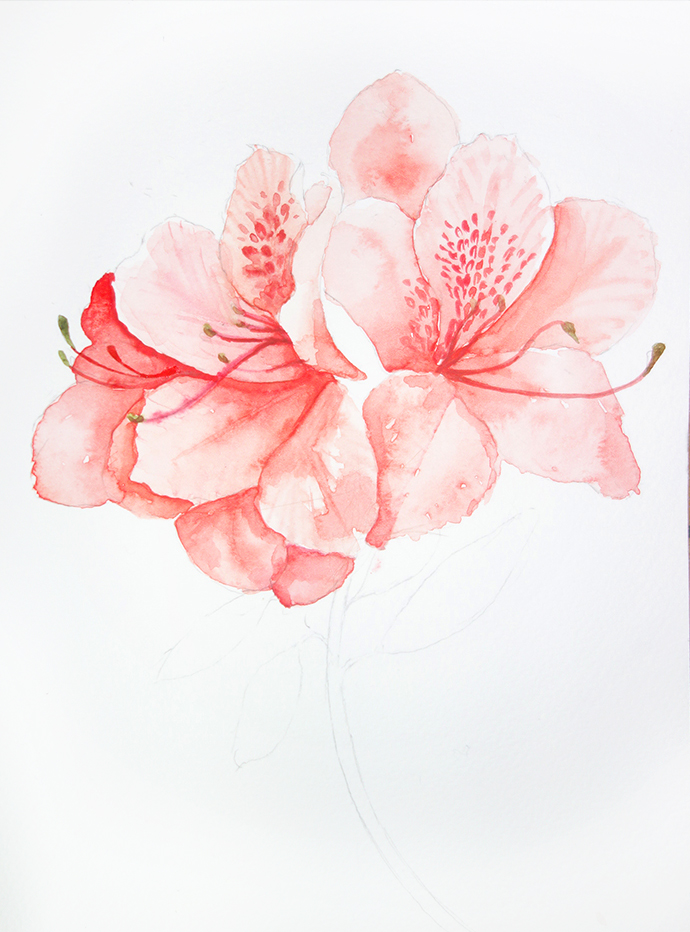 水彩手绘鲜花教程-杜鹃花