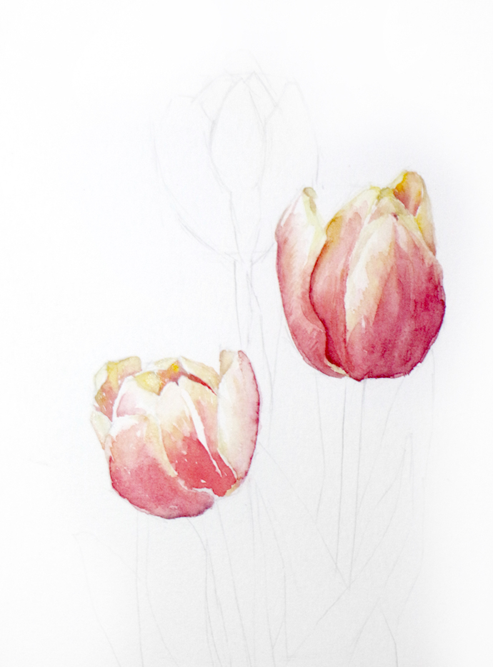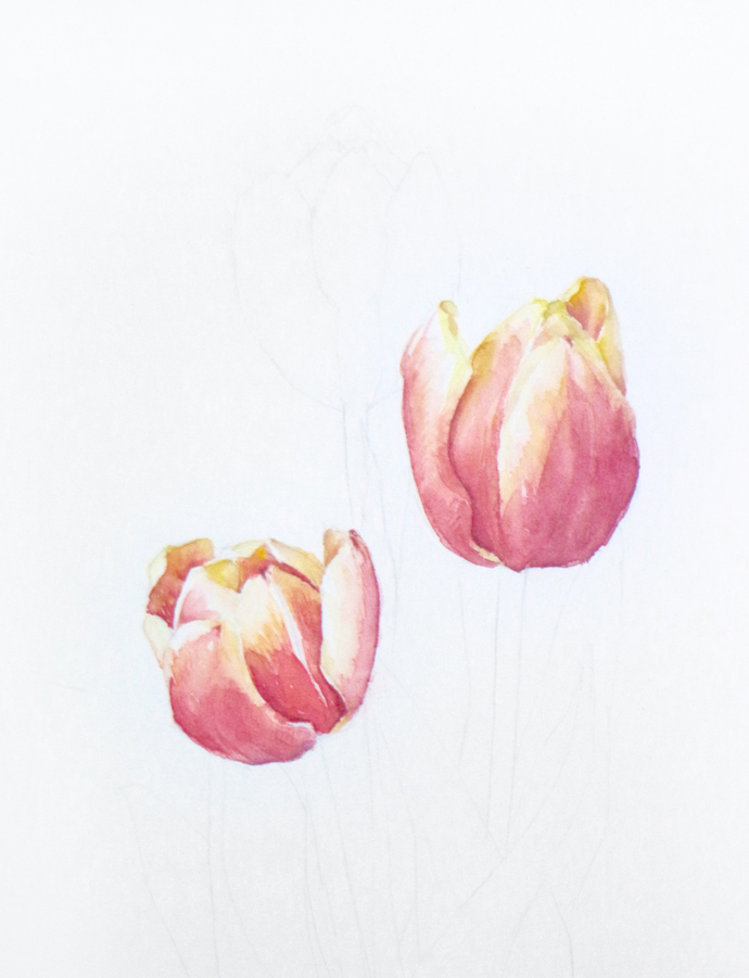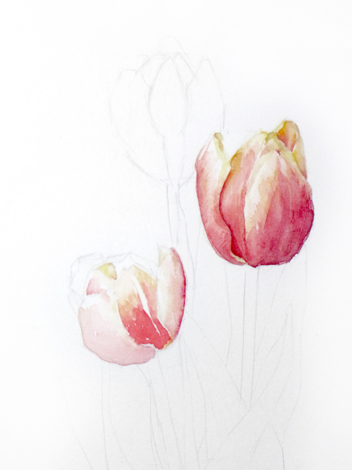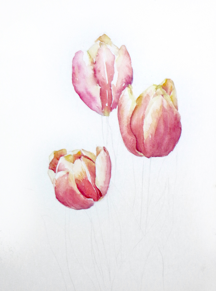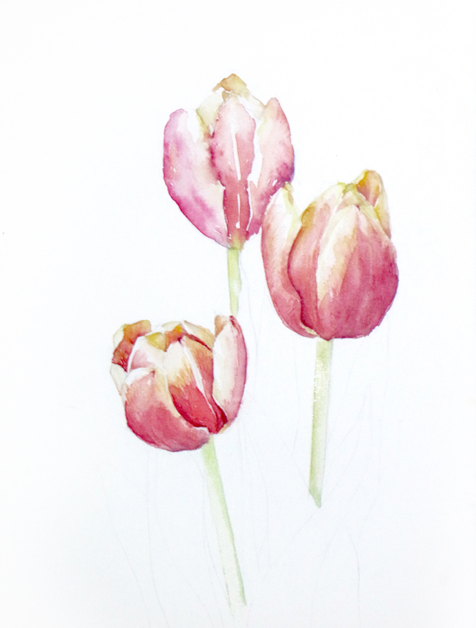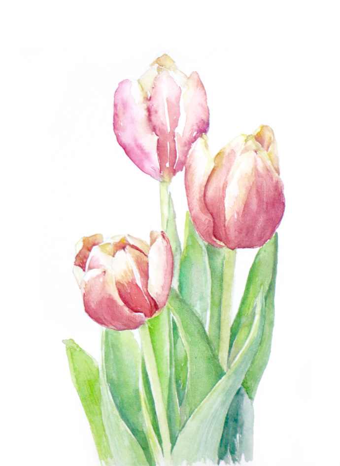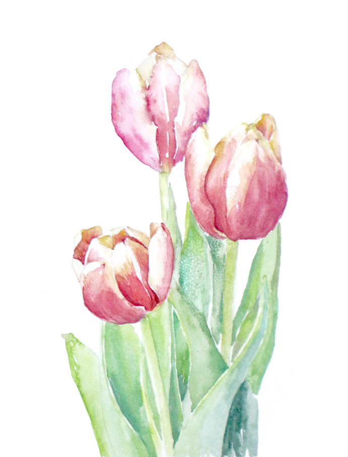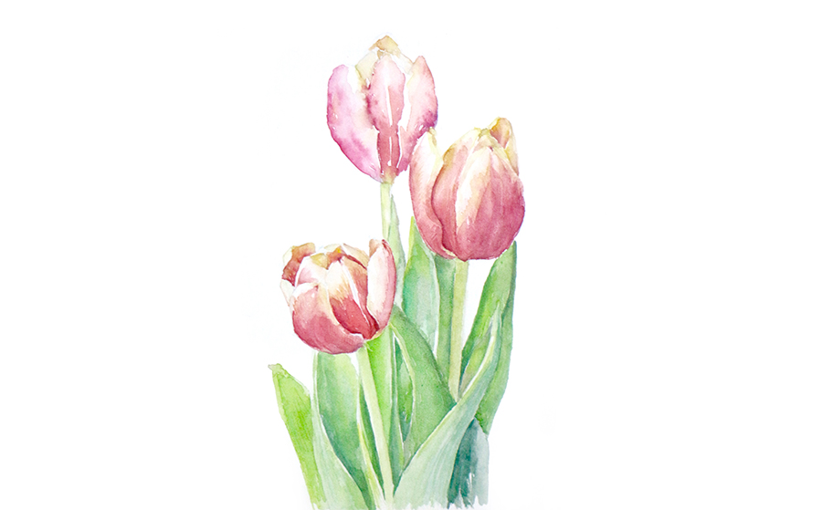 作品名称 /水彩手绘郁金香绘画形式 / 水彩