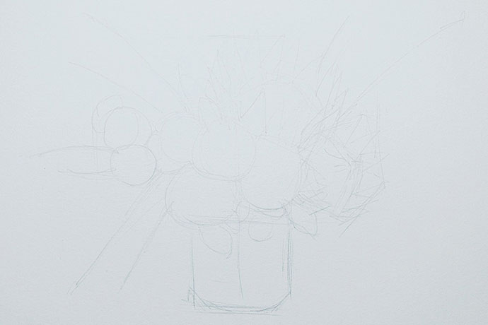 起形:用铅笔勾勒一下大致位置,注意一下比例关系。