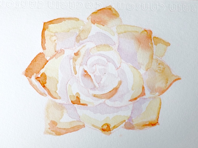 作品名称 /水彩手绘多肉植物-粉雪莲